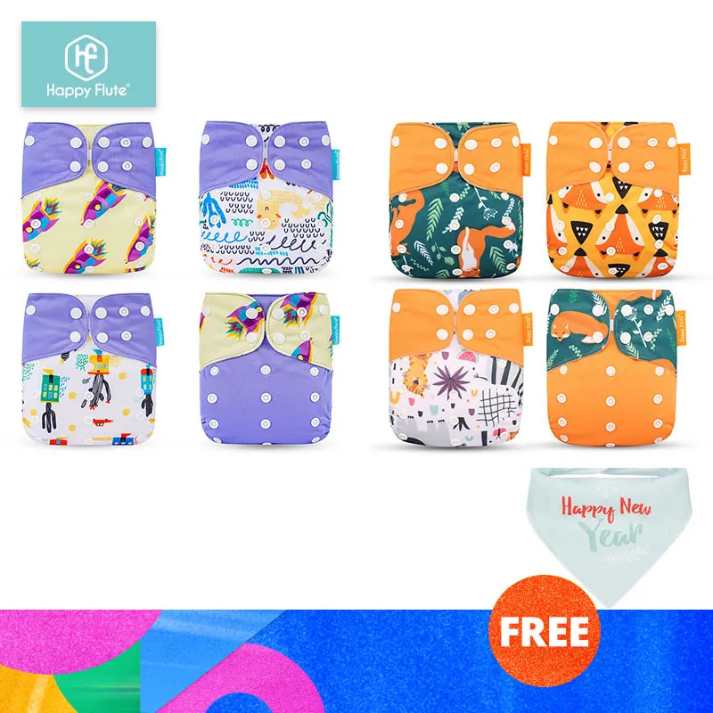 HappyFlute 8 diapers+8 Inserts Baby Cloth Diapers One Size Adjustable Washable Reusable Cloth Nappy